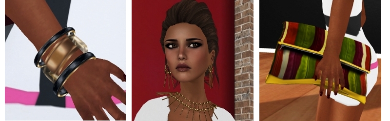 Izzie's got a new skin! Her name is Estella, and she introduces two new tones, cocoa and ebony. They both are darker than Izzie's previously darkest tone, mocha, with ebony being the darkest. I am SO happy with this release. As usual, you get a modifiable (and copyable) shape. I love that so much because shapes are so vital for the way you desire to look. You won't find many creators who give you a skin (and, actually, several skins because of options) AND a modifiable shape for 990L. Now, the dark tones (mocha, cocoa, and ebony) only include one eyebrow option. The skin tones that come with more eyebrow options (dark, light, red, and blonde brows with cleavage/non-cleavage versions of each) cost a mere $1,170L! Also inside each skin tone pack are two freckles tattoo layers (face only or body and face), 12 lipsticks on tattoo layers, 12 eyeshadows on tattoo layers, a nail base on the glove layer, a modifiable/copyable shape, and an eyebrow shaper. Izzie Button, I luvs you!